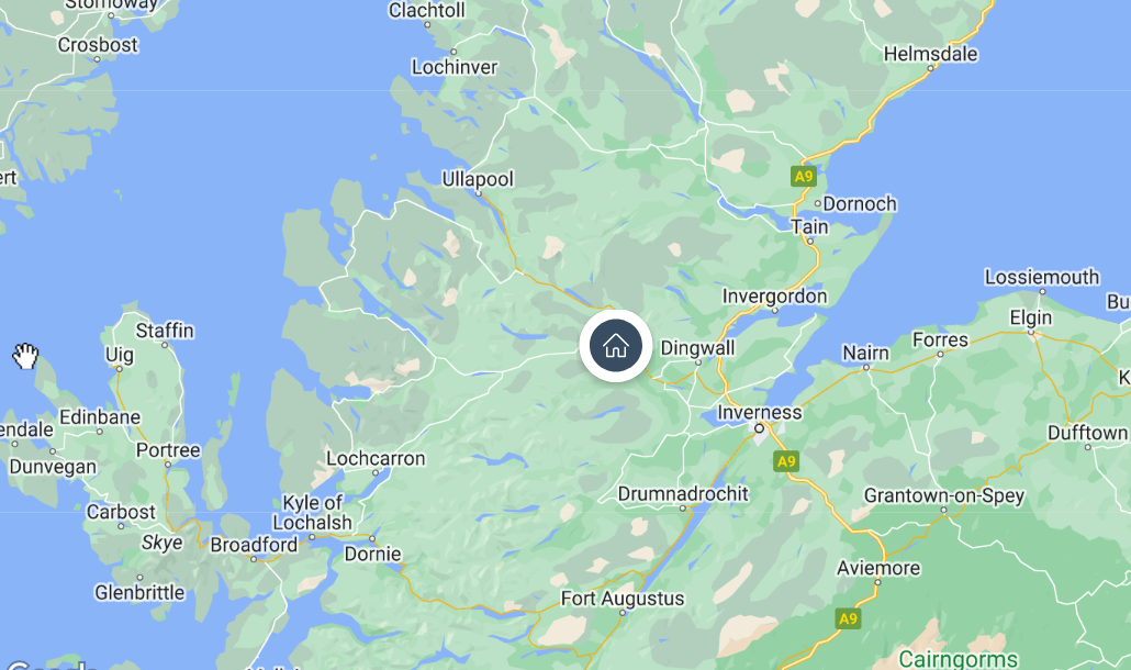 Tigh na Croit liegt in Gorstan, einer kleinen Siedlung (Weiler) in der Nähe von Garve, dem Tor zu den nordwestlichen Highlands. Die verkehrstechnische Lage ist ideal, trifft doch in der Nähe die A832 aus Kyle of Lochalsh (Isle of Skye)/Lochcarron) auf die A835 aus Ullapool mit seinem Fährhafen nach Stornoway (äussere Hebriden). Eine idyllische Gegend für Wanderer, Kletterer, Angler, Segler, Golfer oder Naturliebhaber liegt direkt vor der Tür. Nur einen Steinwurf entfernt sind die Black Waters (s. Bilder), ein Naturwunderland mit atemberaubenden Bergblicken, Ausblicken, bezaubernden Wanderwegen und unberührten Flüssen. Wir haben einige weitere Ausflugsideen im Register "Aktivitäten" zusammengestellt. Tigh na Croit liegt nur 1.6 Kilometer vom Bahnhof Garve und der Bushaltestelle entfernt. Von dort kommt man leicht nach Inverness, Ullapool oder Kyle of Lochalsh. Wenn man aber mehr vom Land sehen möchte, dann ist ein Auto/Motorrad unumgänglich. Der viktorianische Kurort Strathpeffer mit seinem Golfplatz ist nur 10 Kilometer entfernt, Dingwall mit allen Einkaufsmöglichkeiten ist in einer Viertelstunde und Inverness, die Hauptstadt der Highlands, in einer halben Stunde erreichbar. Das historische Urquart Castle (48km, 50 Min.) an den Ufern des Loch Ness ist ebenso in kurzer Reichweite wie Eilean Donan Castle (84km, 60 Min.)
